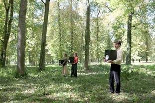 Увы, чтобы экспериментировать до конца с властью перемещения, которую природа применяет к человеку, танцоры сковывают себя в любом хореографическом движении. К сожалению, есть некая холодность на площадке представления, когда действия следуют друг за другом, конечно, они хорошо продуманы, но лишены эмоции. Вот здесь кто-нибудь кладёт опавшие листья на крону кустарника; вот там другой обнимает ствол, затем группа размахивает палкой перед мощным каштаном, и в конце артисты тянут к земле громкоговорители, которые источают на партер колючих кустарников текст, описывающий чудесные цветы… Во всех этих жестах-идеях есть нечто сухое, схематичное. Но это представление, соответствующее духу фестиваля, вызывает у зрителей неожиданную реакцию. Вдруг, сконцентрировавшись на пространстве, обращаешь несказанное внимание на этот уголок зелени, где каждая ветка, каждый листочек и каждый лучик солнца становится участником спектакля.