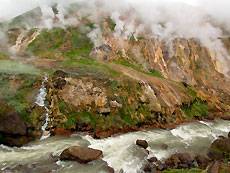 Кроме Камчатки, крупные гейзеры есть в трех местах на планете - в Исландии, Новой Зеландии и США. Однако и в этом малом ряду камчатская Долина выделяется своей уникальностью. На небольшом пространстве (2 на 4 километра) здесь можно наблюдать почти все известные науке разновидности термопроявлений. Кроме гейзеров - это грязевые котлы, термальные площадки, горячие источники, водопады и т. д. Их обрамляют необычные водоросли, бактерии, растительность самых невероятных расцветок. Для сравнения: в Йеллоустонском парке в США от одного гейзера до другого нужно ехать километров 50 по асфальтированной дороге. На Камчатке же все это богатство находится на расстоянии экскурсионной тропы. Правда, на машине, как в Америке, сюда не доберешься. Только вертолетом можно долететь. Поэтому и посещают Долину гейзеров 2-3 тысячи человек в год. Йеллоустонский парк, к слову, не менее 3 миллионов.