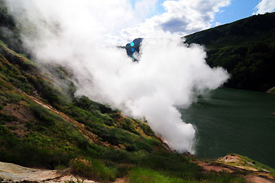 Кто знает, может, особенностями здешней атмосферы и объясняется неимоверное количество легенд, которое люди сочинили о Долине гейзеров за ее недолгую публичную жизнь. Лет 15 назад некоторые специалисты на полном серьезе утверждали, что периодически сюда забредает снежный человек. Правда, поймать его они не сумели. Другая история звучит совсем уж фантастически. Два инспектора плыли на лодке по Кроноцкому озеру, расположенному неподалеку от Долины. Вдруг в воде образовалась глубокая воронка, из нее вынырнул странный объект и с огромной скоростью умчался куда-то в небеса. Инспектора испугались, сообщили о происшествии в администрацию заповедника. Но над ними лишь посмеялись и приказали вернуться в город.