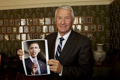 Генеральный секретарь Совета Европы и председатель Нобелевского комитета Норвегии Турбьорн Ягланд помог "направить" Нобелевскую премию мира президенту США Бараку Обаме в 2009 году. (Associated Press)