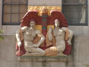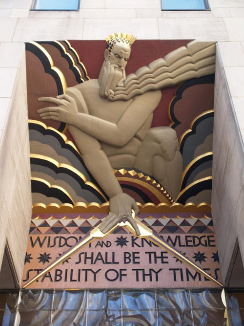 Так какое отношение всё это имеет к Рокфеллеровскому центру? Скульптуры, барельефы и фрески отражают всё ту же тему: торжества человека над Богом через приобретение знаний.