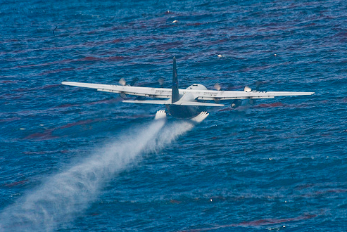 Вдобавок к продолжающимся бедствиям рыбаки по-прежнему видят самолёты, еженощно вылетающие на распыление из Галфпорта – [и производящие его на протяжение] всей ночи.
