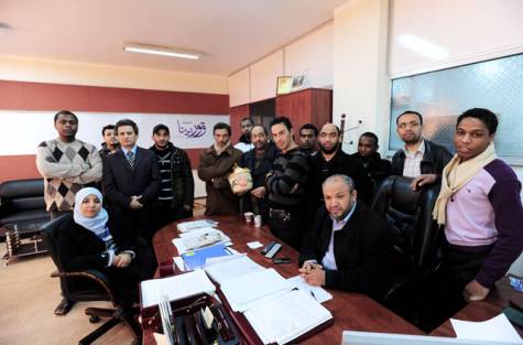 Одна из гостиниц Бенгази предоставляет бесплатный доступ к интернету для всех журналистов, независимо от того, живут ли они в этой гостинице. Там есть комната для собраний, где журналисты собираются и печатают, стуча по клавиатуре.