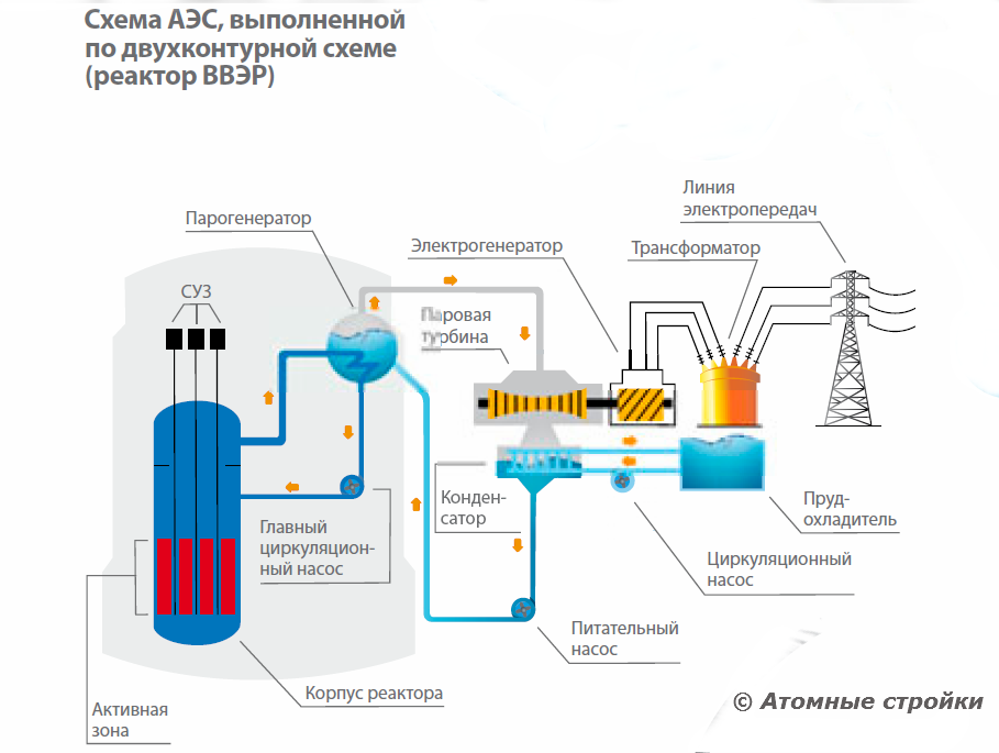 Что касается, строящихся станций по проекту АЭС-2006, то технологическая схема будет схожа с действующей на АЭС с ВВЭР-1000.