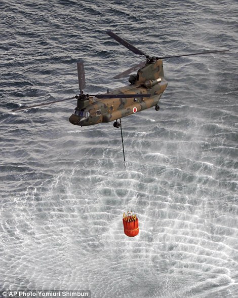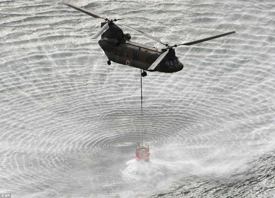Это происходит в то время, когда японские власти предпринимают последнюю отчаянную попытку остановить катастрофическое расплавление, они стали сбрасывать воду с вертолётов на перегретые реакторы АЭС «Фукусима».