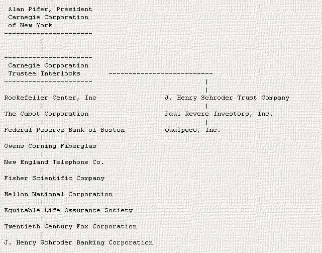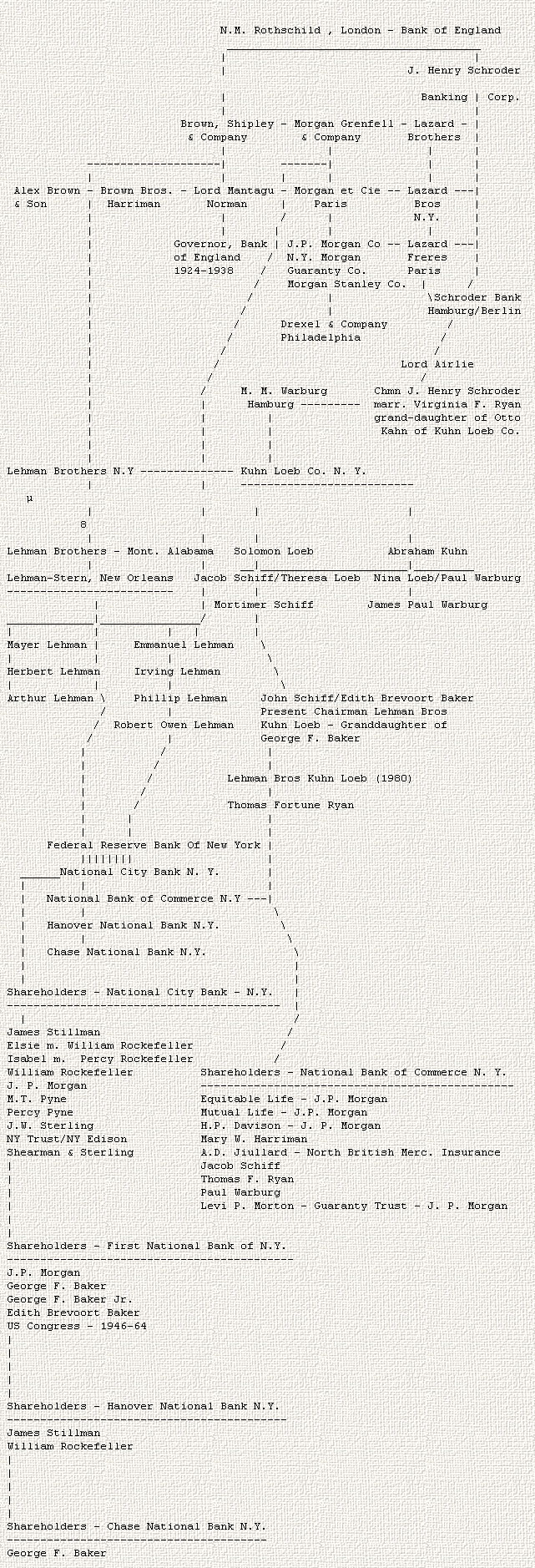 Комментарии сайта APFN: Эта схема показывает связь Федерального Резервного банка Нью-Йорка с компаниями «J. Henry Schroder Banking Corp.», «J. Henry Schroder Trust Co.», «Rockefeller Center Inc.», «Equitable Life Assurance Society» (Дж.П.Морган ), и Федеральным Резервным банком Бостона.