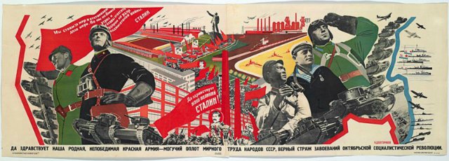 Обычному студенту-историку сталинская Россия представляется этаким творческим Средневековьем для страны, которая дала миру художников подобных Марку Шагалу и Толстому. Но новая выставка советских пропагандистских плакатов показывает что, художникам, иллюстраторам и авторам удавалось творить и создавать новое, несмотря на железную хватку режима Сталина.