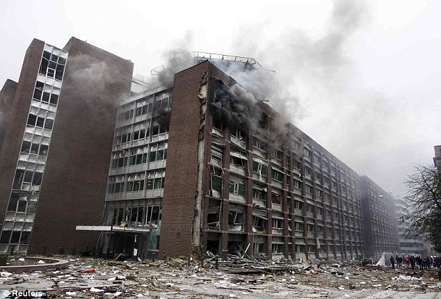Большая часть стёкол в 20-этажном здании, где работает г-н Столтенберг и его администрация, были выбиты. Другие повреждённые здания - это здания, в которых находятся правительственные офисы и головные офисы некоторых ведущих газет Норвегии.