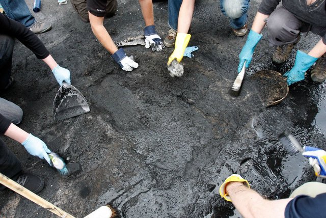 40 После беспорядков в понедельник поздно вечером, добровольцы, очищают улицы в знак солидарности, они убирают остатки сгоревшего автомобиля на улице в Хакни, Лондон, вторник, 9 августа 2011 года (AP Photo / Аcira Suemori) #