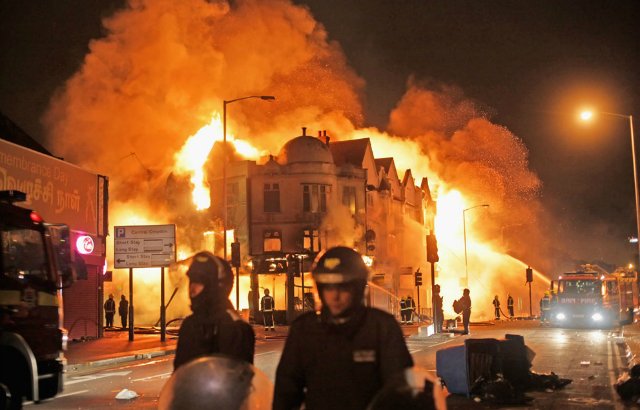 35 Пожарные боются с большим огнём, который вспыхнул в магазинах и жилых домах в Кройдоне, 9 августа 2011 года, Лондон, Англия. (Dan Kitwood / Getty Images) #