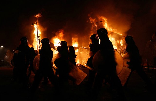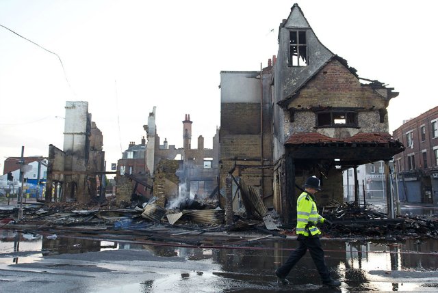 32 Полиция перекрыла улицу, во время крупного пожара в Кройдоне, 9 августа 2011 года, Лондон, Англия. (Dan Kitwood / Getty Images) #