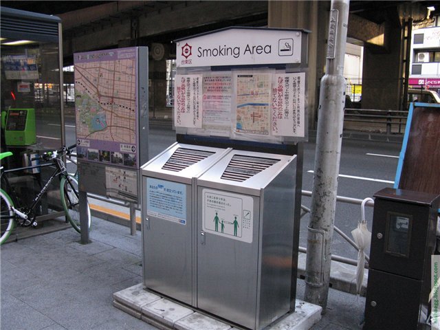 Ну... почти нигде нельзя. Исключительно очень редко встречаются вот такие вот места для курения на улице.