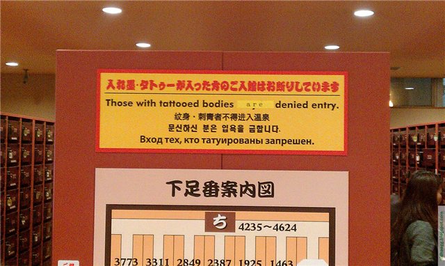 При всей своей любезности, к этому правилу японцы относятся крайне серьезно. Так что так. Японцы считают татуировки членовредительством и уделом умалишенных или же якудзы — мафии. И тем и другим не место в приличных местах.