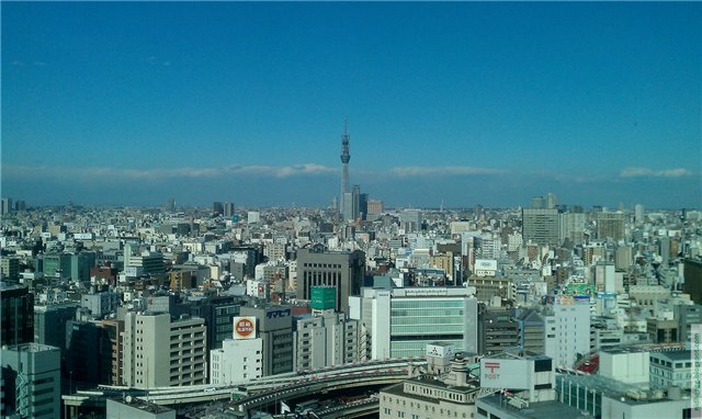 Вид с 17 этажа, здание в районе Яэсу. Башня — самое высокое в мире сооружение, более 600 метров. кажется.