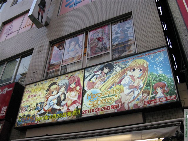 Здесь же расположено множество мейд-кафе. С девочками, наряженными в форму горничных и относящимися к Вам, словно вы наследный принц Императорского дома. Кэйго — почтительная речь — льется потоком, подача коктейля превращается в маленькое шоу под пение гимнов про вашу честь. На неподготовленную иностранную психику может оказать мощное воздействие даже без знания языка. Конечно, весь кайф можно словить, лишь зная японский_ иначе все хвалебные эпитеты для вас будут звучать как "ня-ня-ня, кудасай" — а это не айс. Но для общего развития можно и даже нужно зайти разок.