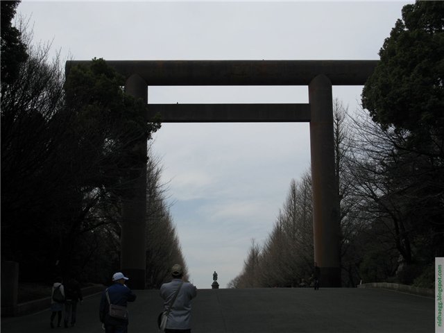 Не смотря на мой совсем неяпонский вид, служащие столь чудесного места демонстрировали откровенное дружелюбие. Единственный раз только меня с точки напротив центрального входа в сам храм согнал полицейский, когда я там с фотоаппаратом пристроился, позже я узнал — что центральная ось всего комплекса — это дорога богов. Люди даже через центр ворот не должны проходить.