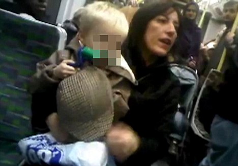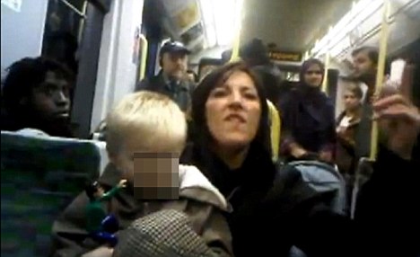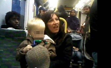 Пассажиры в шоке смотрели, как женщина с ребенком на коленях продолжает свою злобную тираду.