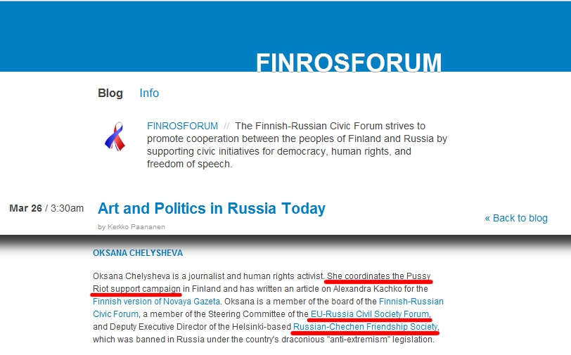 Также красноречивым является то, что Оксана Челышева - член правления и член оргкомитета НФД, финансируемой "Открытым обществом" осуждённого преступника Джорджа Сороса , "Открытого общества", Фонда Форда, (международный фонд в защиту правозащитников), финансируемого Фондом Зигрид Раузинг, и руководимого Госдепартаментом США и связанного с "Амнести Интернэшнл" - возглавляет кампанию поддержки "Пусси Райот".