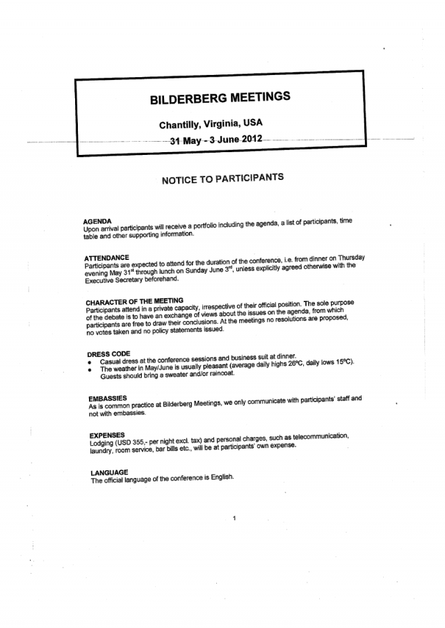 В связи с тем, что в Конференции участвовал министр финансов Ирландии Майкл Нунан, и в соответствии с Законом о свободе информации, были затребованы и получены документы об этой встрече. Они раскрывают полную повестку Конференции 2012 года (см. фото 1).