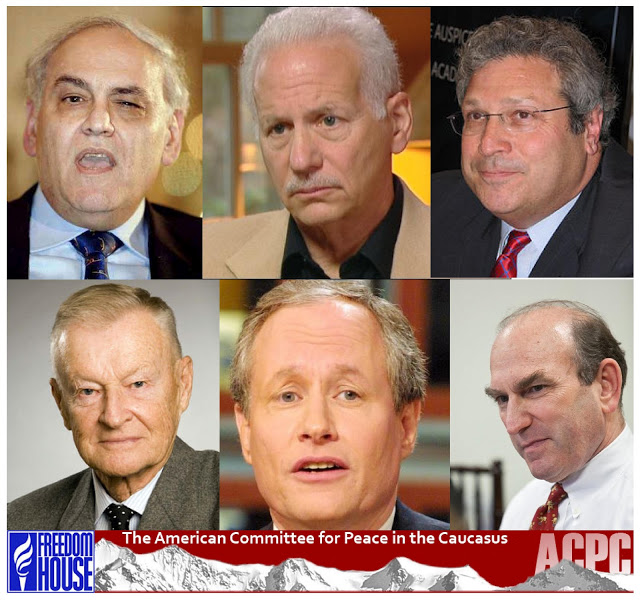Несмотря на то, что такие организации как "Кавказ-Центр" находятся на службе у террористов, которые выступают за уничтожение России, их деятельность сама по себе совсем незначительна, если рассматривать ее в вакууме. Скорее, это объединение таких типов лиц и организаций с Госдепартаментом США и американской разведкой, что делает их особенно коварными. Одной такой организацией, которая заслуживает ближайшего рассмотрения, является Американский комитет за мир на Кавказе (ACPC), ранее известный как Американский комитет за мир в Чечне. Как сообщал сайт Right Web Института политических исследований, "ACPC была основана в 1999 году Freedom House, неоконсервативной организацией, которая тесно сотрудничает с правительством США, получая средства от Национального фонда в поддержку демократии и других инициатив США по демократизации". Эта тесная связь между ACPC и Государственным департаментом США свидетельствует не только о слиянии интересов, но скорее о прямых отношениях, при которых первая организация является органом последней.