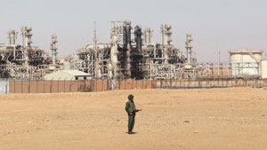 Алжирский солдат несет охрану на газоперерабатывающем заводе в Эйн-Аменас, на который напалаи боевики, включая двух канадцев, в январе. (Ассошиэйтед Пресс)
