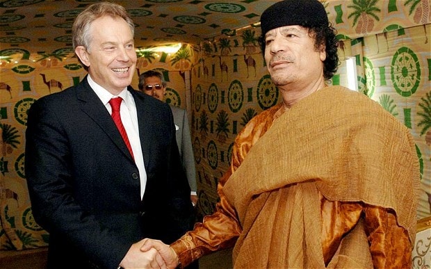 Тони Блэр во время одной из его встреч с Муаммаром Каддафи в Ливии. Фото: Стефан Руссо / РА