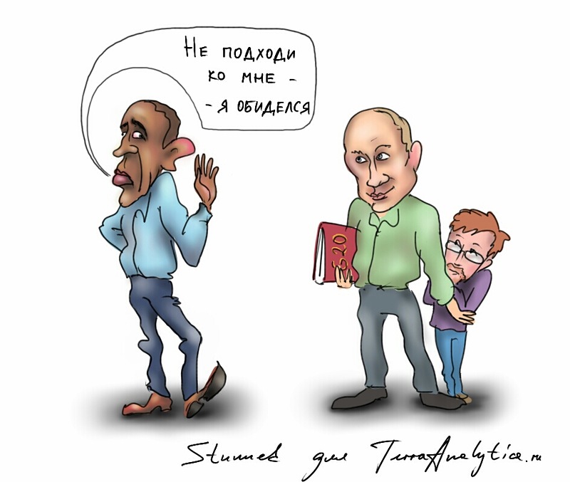 Обама: - Не то, чтобы сильно... Все и так знали, что мы шпионим по всему миру, но такое, ведь, нельзя произносить вслух, ты же понимаешь. А он попалил всю контору. Это нельзя прощать.