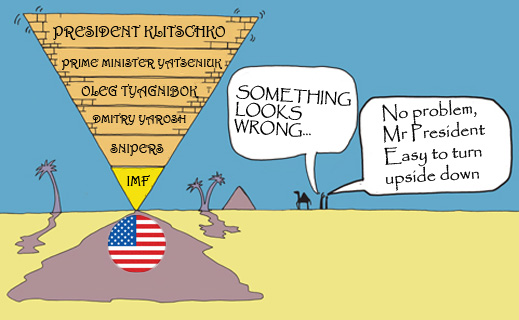 Когда были подсчитаны цифры по стране, а не на Майдане, американцы и их тройка - Кличко, Яценюк и Тягнибок - пришли к заключению, что им необходимо срочно сместить Януковича, иначе они оказывались в меньшинстве и был риск, что они проиграют выборы, потеряв со временем народную поддержку, которую, как казалось, давали им демонстрации на Майдане.