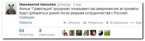 Вообще оч.смешно наблюдать в прямом эфире, как у "прогрессивной западной обчественности" атрофируется моск и вырастают хвосты. Ссанкции они ввели, ну да...