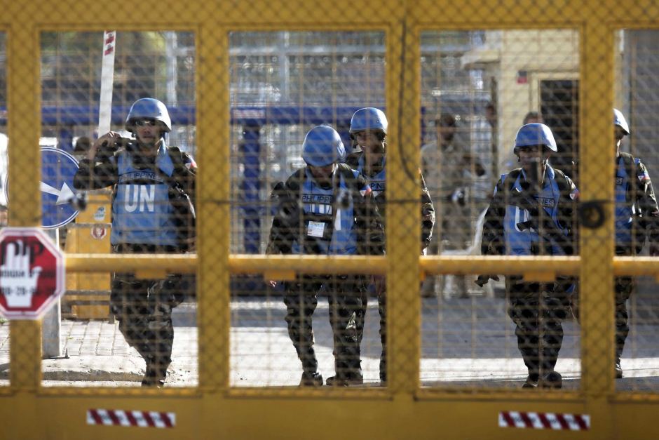 Миротворцы (ООН) с Филиппин на контрольно-пропускном пункте Кунейтра между Сирией и аннексированными Израилем Голанскими высотами.