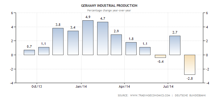 В абсолютном контрасте с Германией, где промышленное производство показало снижение на 2.8%