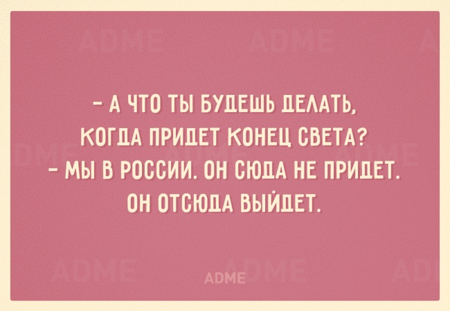 Чем мне нравится жизнь в России - нет никакого смысла излишне возбуждаться на какую-нибудь хуйню. Я заранее знаю, что в конце всегда будет по-моему. Просто потому что я - 84%.