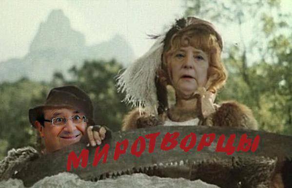 Олланд и Меркель везут Путину новый план (в хорошем смысле). Вот не пойму, что они всё в Москву прутся: резиновая, что ли? Владимир Владимирович же ясно много раз всем сказал: договаривайтесь с Донбассом! Нет, опять наступают на те же грабли. Я уже вижу этот ряд: Минск, Минск+, Минск 2.0, Минск Professional, Минск возвращается...