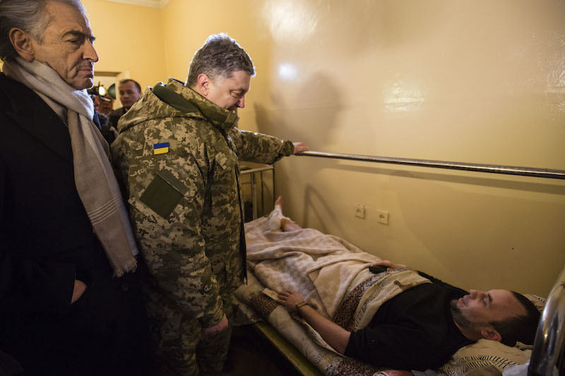 К нам подходит врач с засученными рукавами (на улице -10°!), чтобы отвести нас в приемный покой больницы. Президент останавливается у каждой кровати – он расспрашивает раненых, сочувствует им, а с наиболее отважными пытается даже шутить.