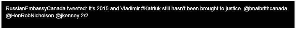 Посольство России в Канаде: Год 2015-й, а Владимир #Катрюк всё ещё не отдан под суд. @bnaibrithcanada @HonRobNicholson @jkenney 2/2