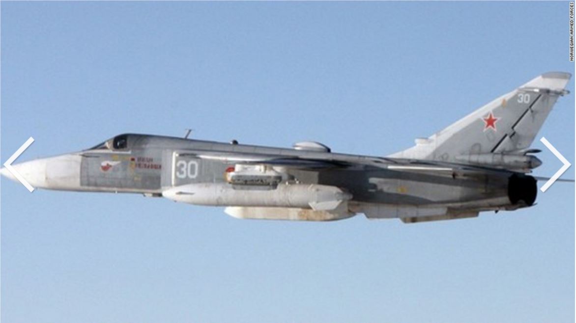 A Su-24 attack aircraft, nicknamed the Fencer by NATO, was photographed by a Norwegian warplane.