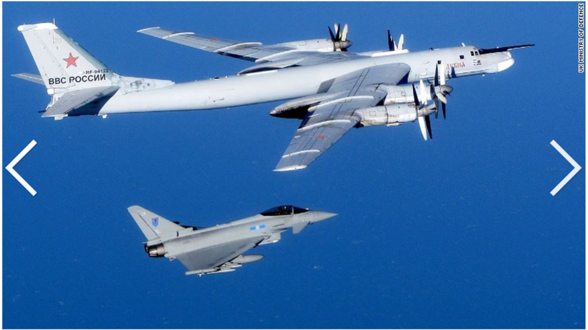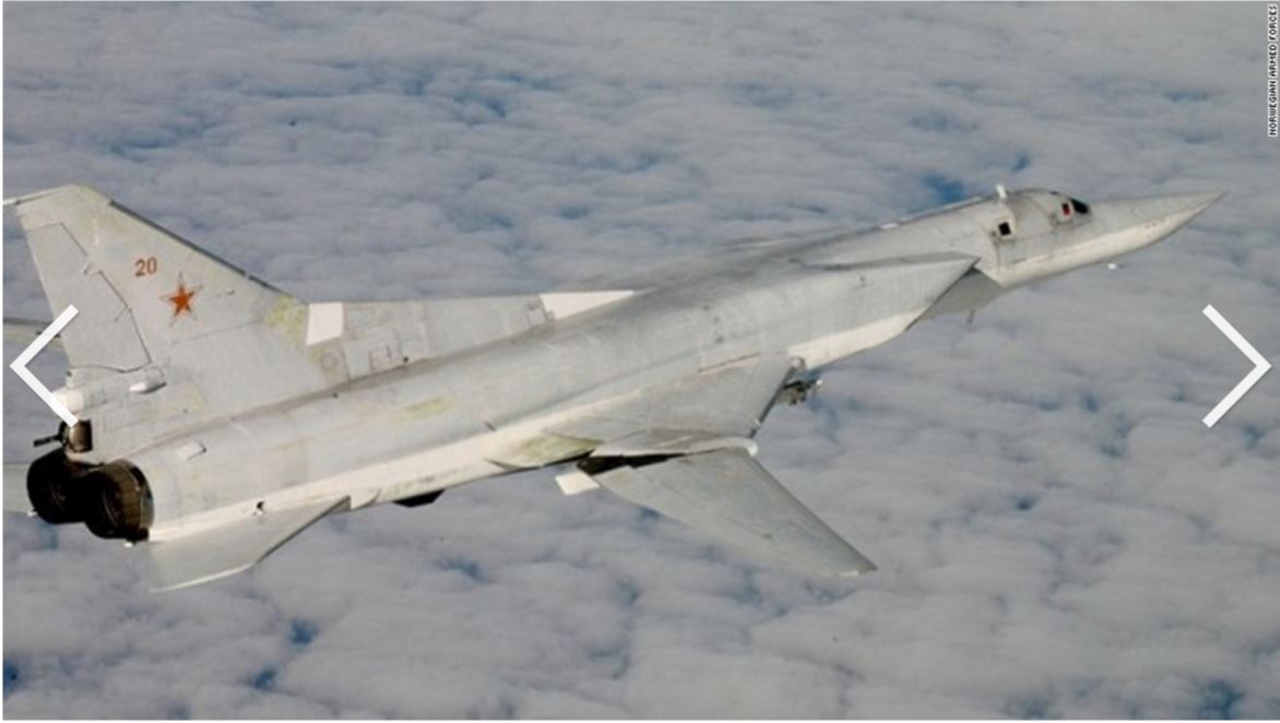 Российский бомбардировщик, выпроваживаемый из воздушного пространства Европы; по сообщениям, имел на борту атомные бомбы.