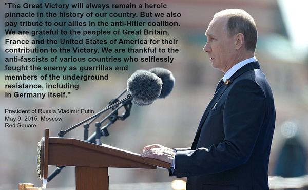 Я предполагаю, что за прошлый год президент России Владимир Путин устал слушать предостережения, предупреждения, замечания премьер-министра Стивена Харпера и его министров по поводу тех или иных его действий и политики. В субботу , на торжествах по случаю 70-й годовщины окончания Второй мировой войны, Путин поблагодарил США, Францию и Великобританию , тех кого он назвал союзниками России в войне против Гитлера , за вклад в победу над Третьим Рейхом. Путин также поблагодарил партизан- антифашистов и членов антифашистского подполья различных стран за их борьбу с нацистами.