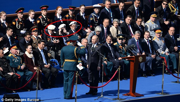 Во время празднования Дня Победы в Москве, Эрни Кеннеди, Джефф Шелтон и Дэвид Крэйг (обведены кружком), были посажены прямо позади президента России и рядом с китайским лидером Си Цзиньпином