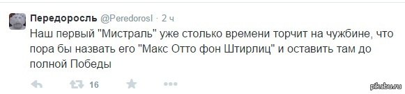 Вот, например, французская газета Фигаро сообщает, что в случае расторжения контракта на поставку в Россию вертолетоносцев "Мистраль", власти страны могут, вы не поверите, затопить новенькие корабли в открытом море. В полном соответствии с классической формулой Юлия Капитоныча Карандышева "Так не доставайся же ты никому".