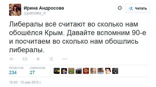 PS Для особо одаренных: мы все еще не знаем, кто сбил Боинг, заказал Немцова и убил Мозгового. А если вы вдруг феномэн, то скажите мне, какой будет курс доллара через год, пожалуйста, спасибо. Можно в личку. Но скорее всего вы не феномэн, а мудозвон.