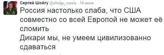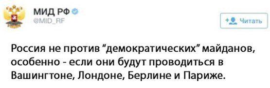 Россия выразила удивление такому накалу миролюбия и заверила, что она всегда придерживалась принципа поддержания конструктивного диалога со всеми своими партнёрами, для чего поставит на боевое дежурство сорок новых баллистических ракет с разделяющимися боеголовками, чтобы хватило всем и никто не ушёл обиженным, так как Россия – щедрая душа.