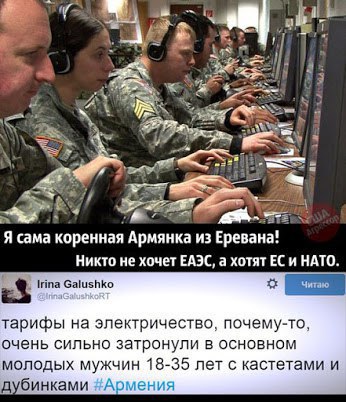 Они вышли из-за тарифов на электроэнергию (какая нынче разница, из-за чего выходят?), но машут флагами Евросоюза и требуют вывести нашу базу. ОК. Базу выведем, как вывели базы из Грузии, а с Карабахом пусть Евросоюз и разруливает.
