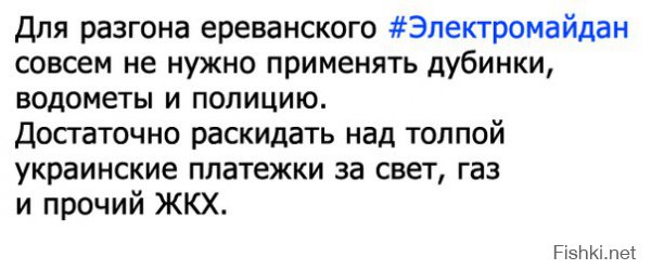 Но кто-нибудь добрый - покажите молодым армянам на площадях, что произошло с тарифами на электричество в еще одной стране бывшего СССР после массовых уличных протестов.