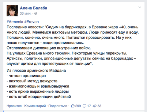 И очень хочется в это верить. Как и в то, что в Ереване никакой не майдан, а социальный протест, целью которого есть добиться снижения стоимости электроэнергии и расследования фактов коррупции в энергетике.