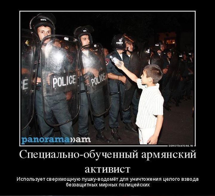Вот этого армянского мальчика с демотиватора особо волнует рост тарифов на электроэнергию, поэтому он сам без родителей пришел туда, где есть некоторое силовое противостояние. Опасность. Ну, если, конечно, фото для демотиватора снято там, где указано.