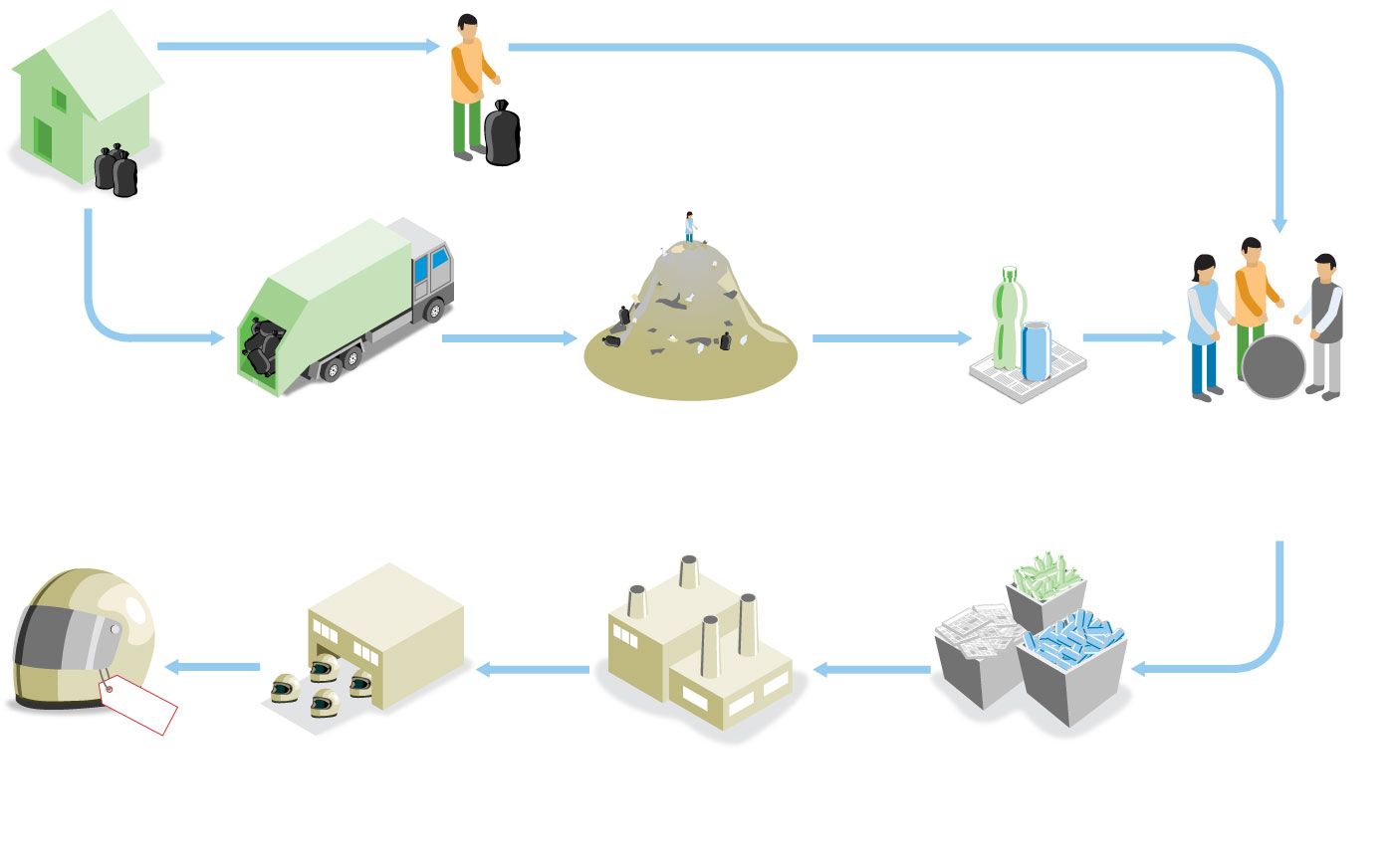 Индийская индустрия переработки предоставляет работу миллионам людей, от сборщиков на улицах и на свалках до более высокого уровня фабрик, которые занимаются переработкой.