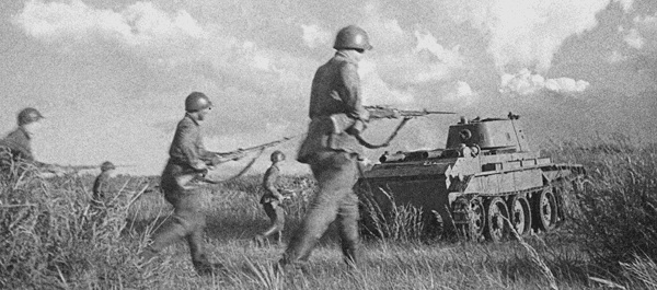 Советская пехота движется позади танка БТ-7 в спорном азиатском пограничном регионе, 1939 год. РИА Новости.