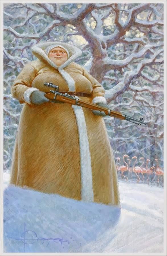 Батюшка взирал на эти эволюции с олимпийским спокойствием. Потом дочка подошла ко мне и спросила: "Папа! А почему у Деда Мороза одежда черная? Снегурочка померла?"