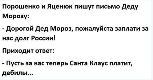 Дедушка Мороз! За снег спасибо. Сделай еще так, чтобы у тех, кто постит ссылки с фразой "взорвало интернет", реально взрывался модем или роутер в квартире. А на тех, кто им пишет "боян", падал сверху огромный баян.